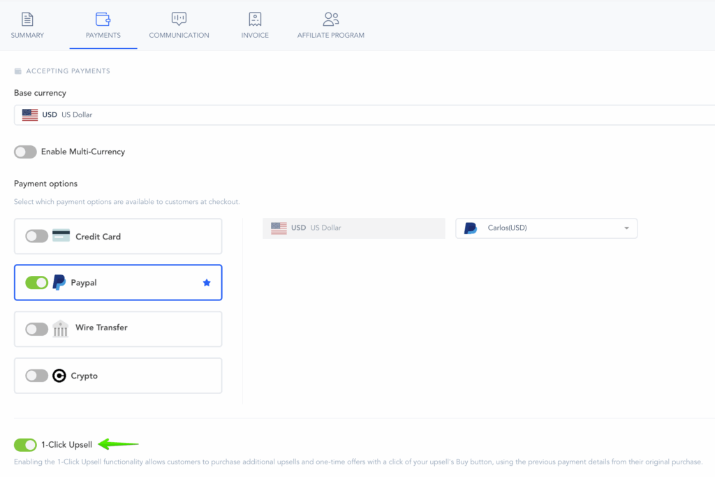 The 1-Click Upsell functionality is automatically integrated into your sales funnel.