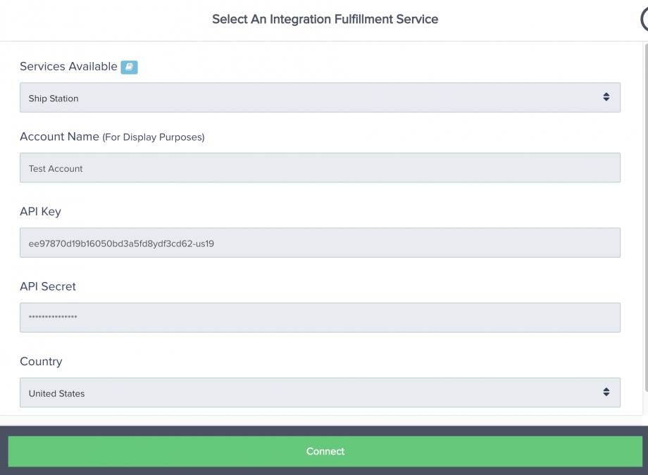 Give it a unique name to identify the integration, add the API Key and Secret Key provided by ShipStation and select your country.