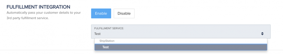 Then Enable Fulfillment Integration and select the ShipStation integration you just added.