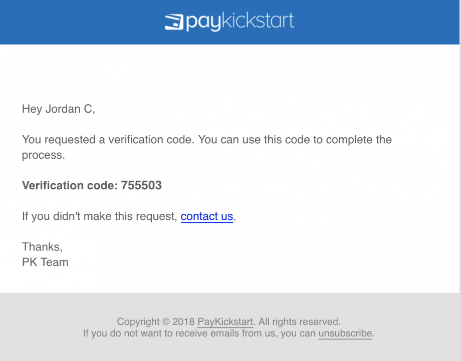 If PayKickstart detects suspicious logins for your account, it will lock the account and send an email to the account email address. Included in the email, you will find a 6 digit unlock code that you will need to enter and unlock the PayKickstart account.
