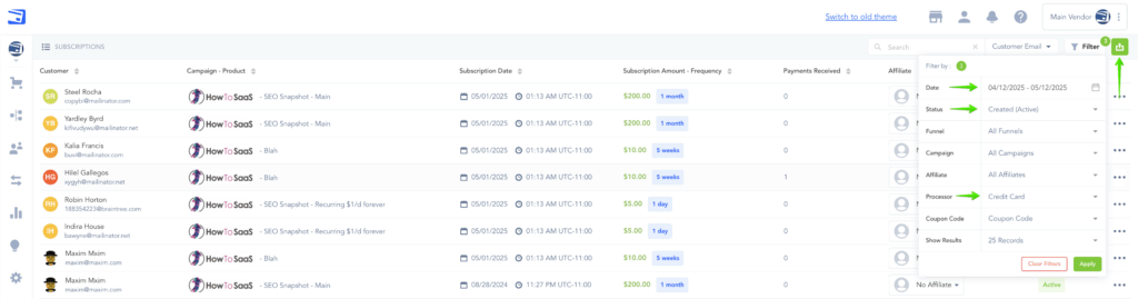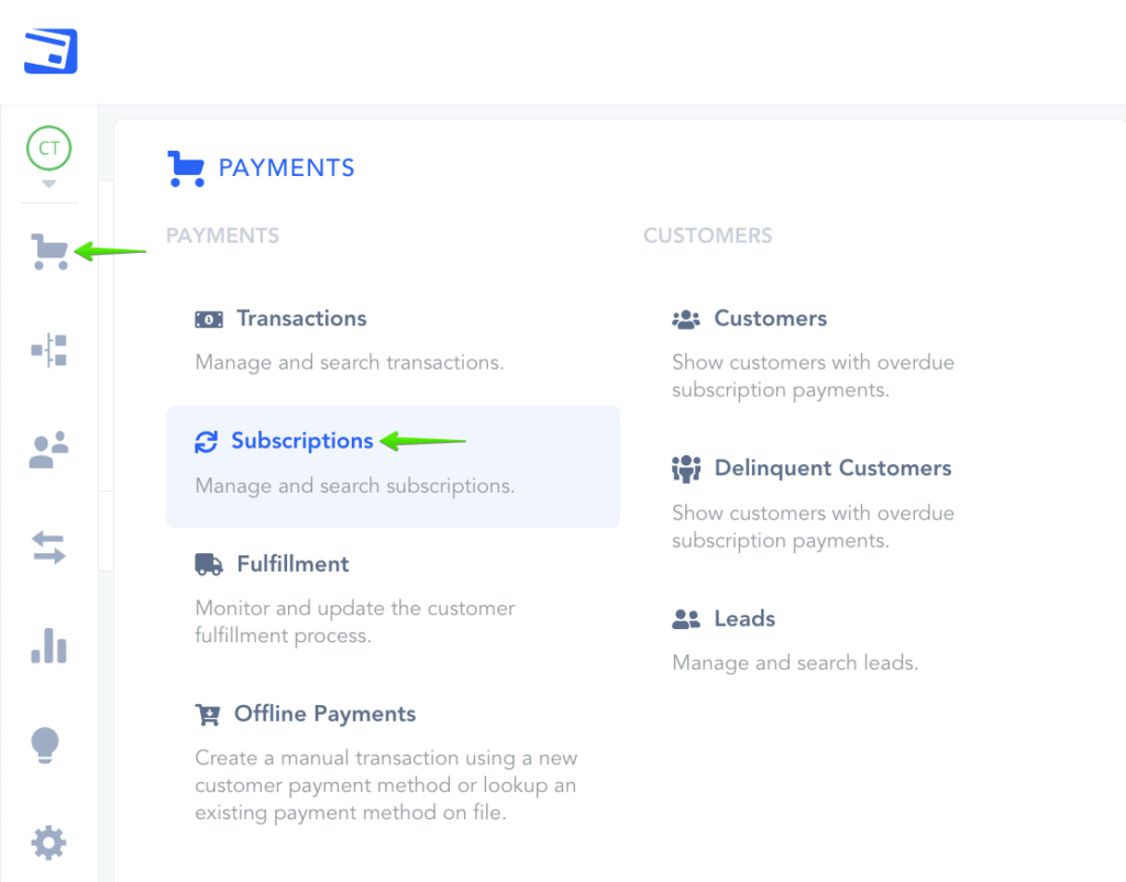 Go to Payments > Subscriptions in your PayKickstart dashboard.