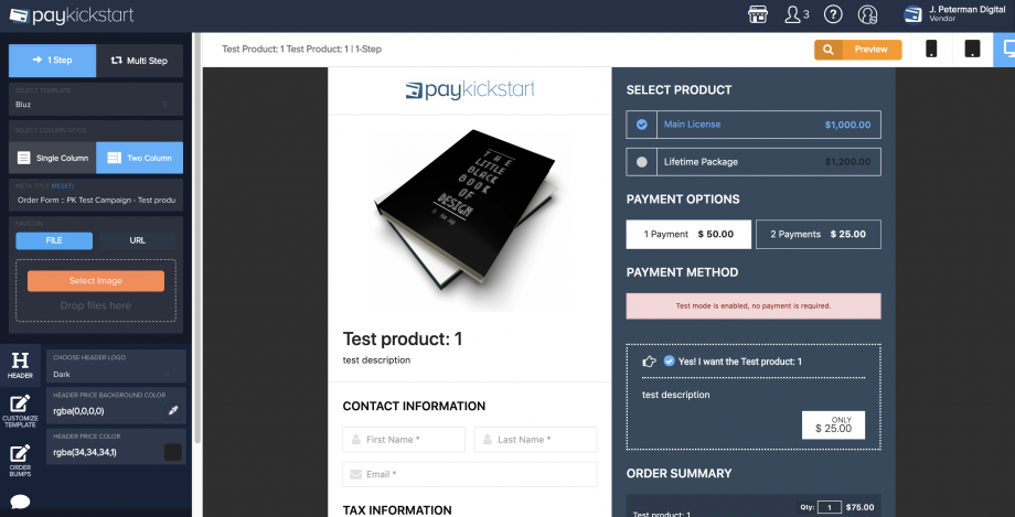 The checkout page builder allows you to customize the checkout page for each product.
