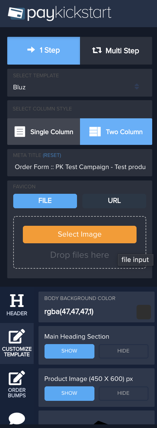 Note: The Logo on the top left of the checkout page is pulled from the Campaign options.