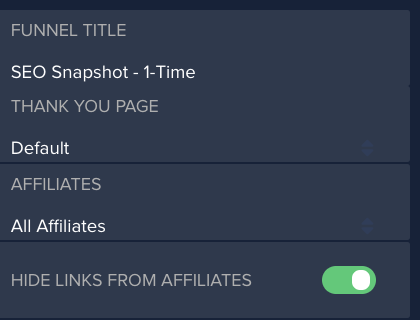 - Sales Funnel is set to hide affiliate links: If the sales funnel is set to hide affiliate links, then no affiliates will see links for that related funnel.