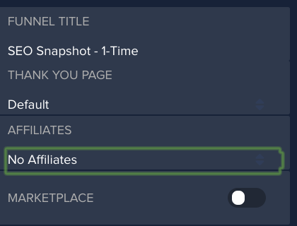 - Sales Funnel is set to no or select affiliates: If a sales funnel is set to “no affiliates”, then no affiliates will have access to the related affiliate link. If the sales funnel is set to “select affiliates”, then only the affiliates selected will have access to the related affiliate link for the funnel.
